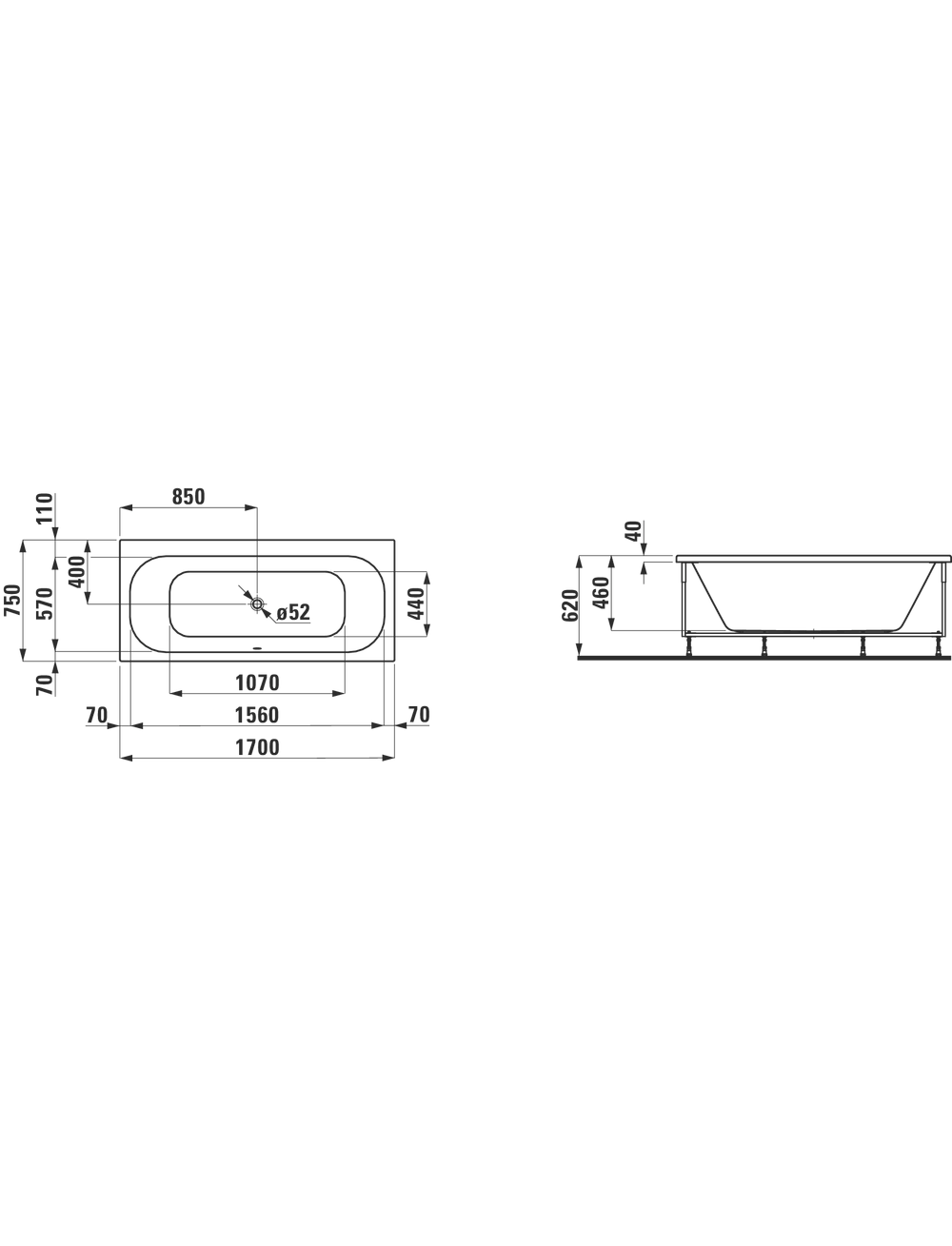 Акриловая ванна Laufen Solutions 170х75 2.2353.1.000.000.1