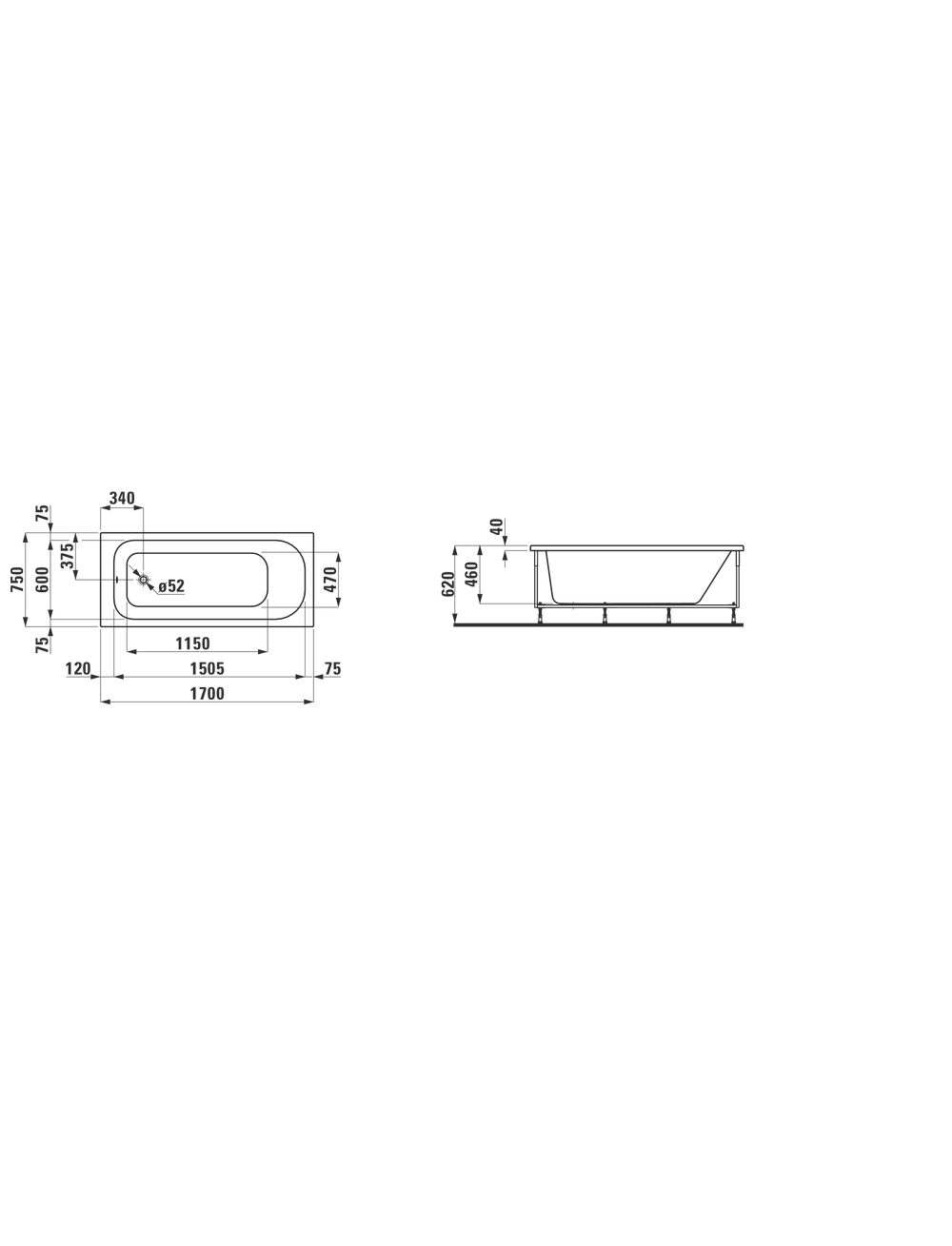 Акриловая ванна Laufen Solutions 170x75 2.2350.1.000.000.1