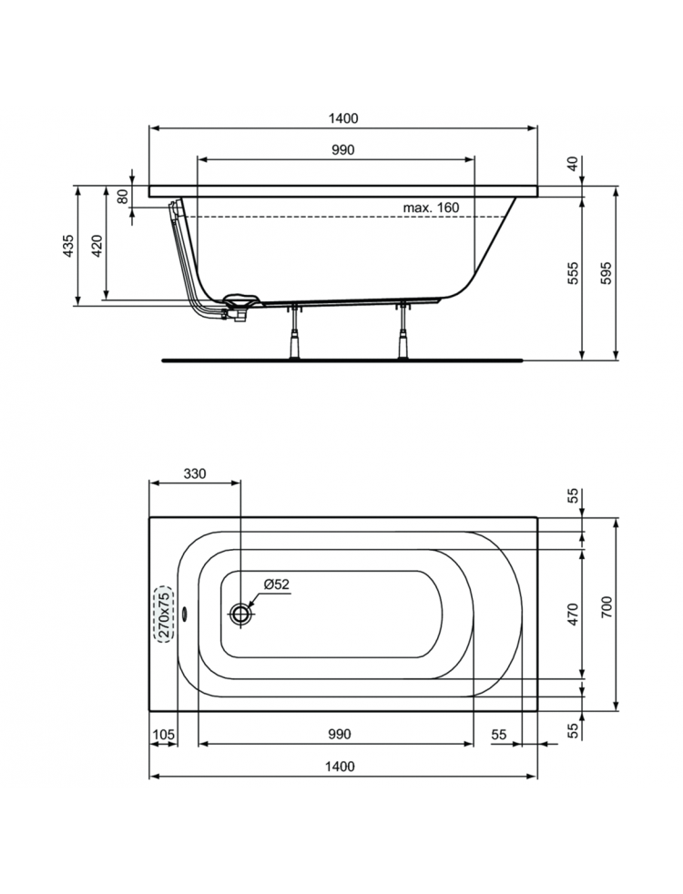 Прямоугольная ванна 140х70 см Ideal Standard SIMPLICITY W004101