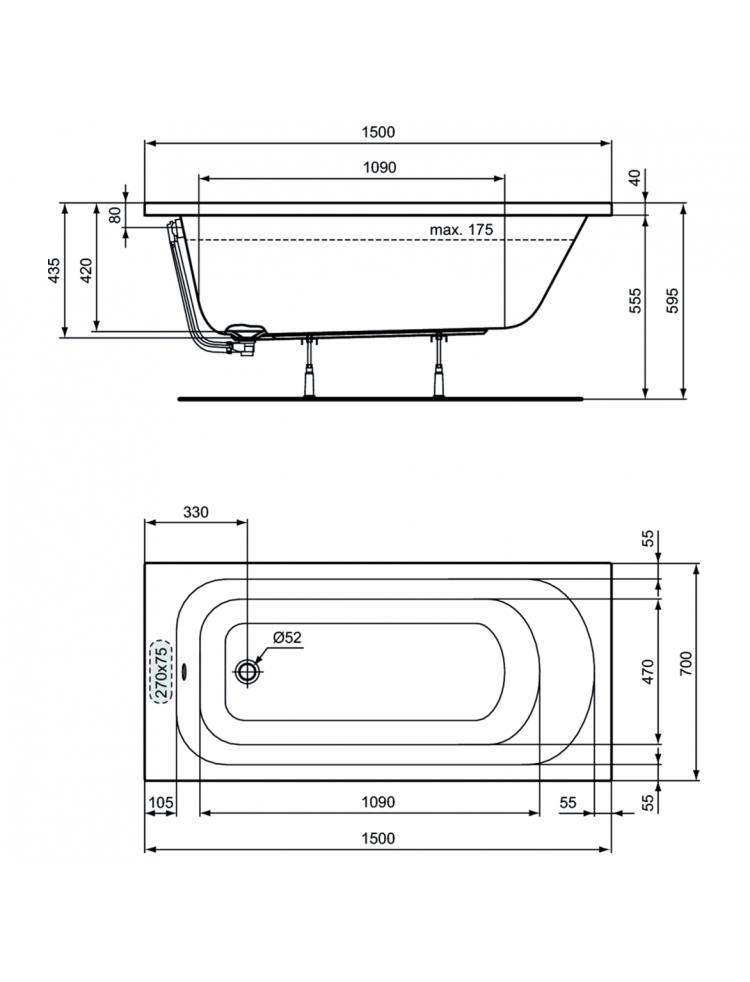 Прямоугольная ванна 150х70 см Ideal Standard SIMPLICITY W004201