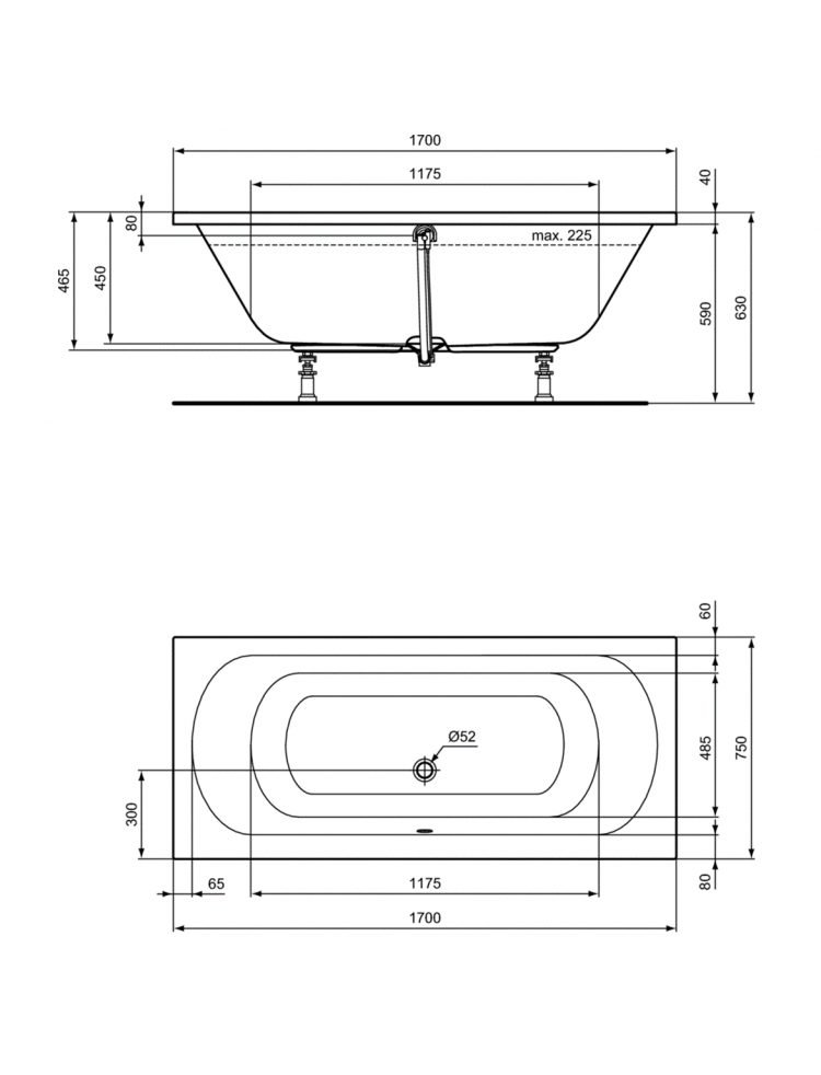 Прямоугольная ванна 170х75 см Ideal Standard HOTLINE K274901