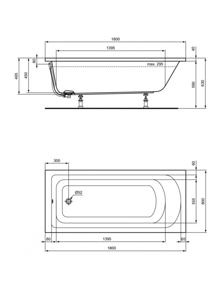 Прямоугольная ванна 180х80 см Ideal Standard HOTLINE K274801