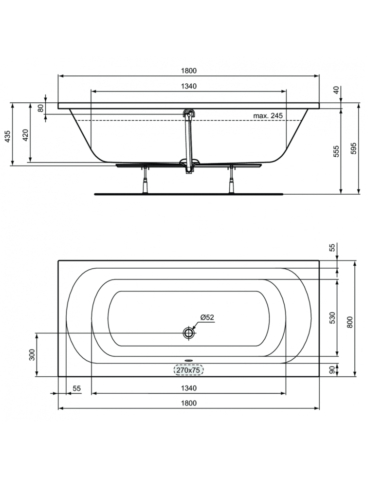 Прямоугольная ванна 180х80 см Ideal Standard SIMPLICITY W004601