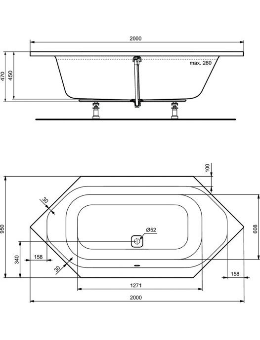 Шестиугольная встраиваемая акриловая ванна 200X100 см Ideal Standard TONIC II K747001