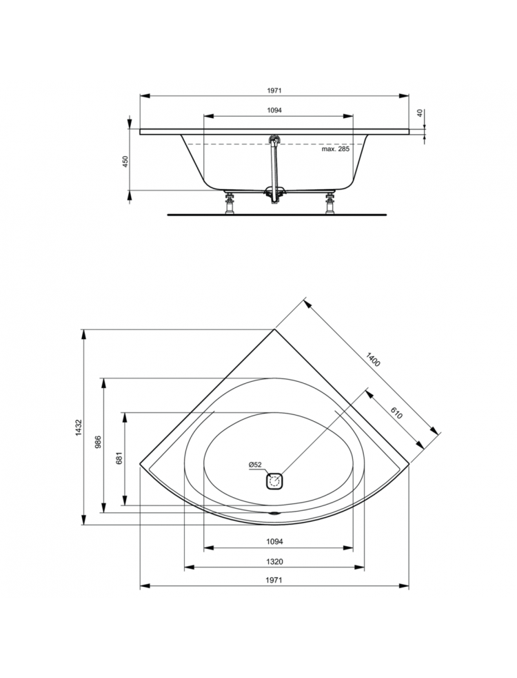 Угловая встраиваемая акриловая ванна 140X140 см Ideal Standard TONIC II K746701
