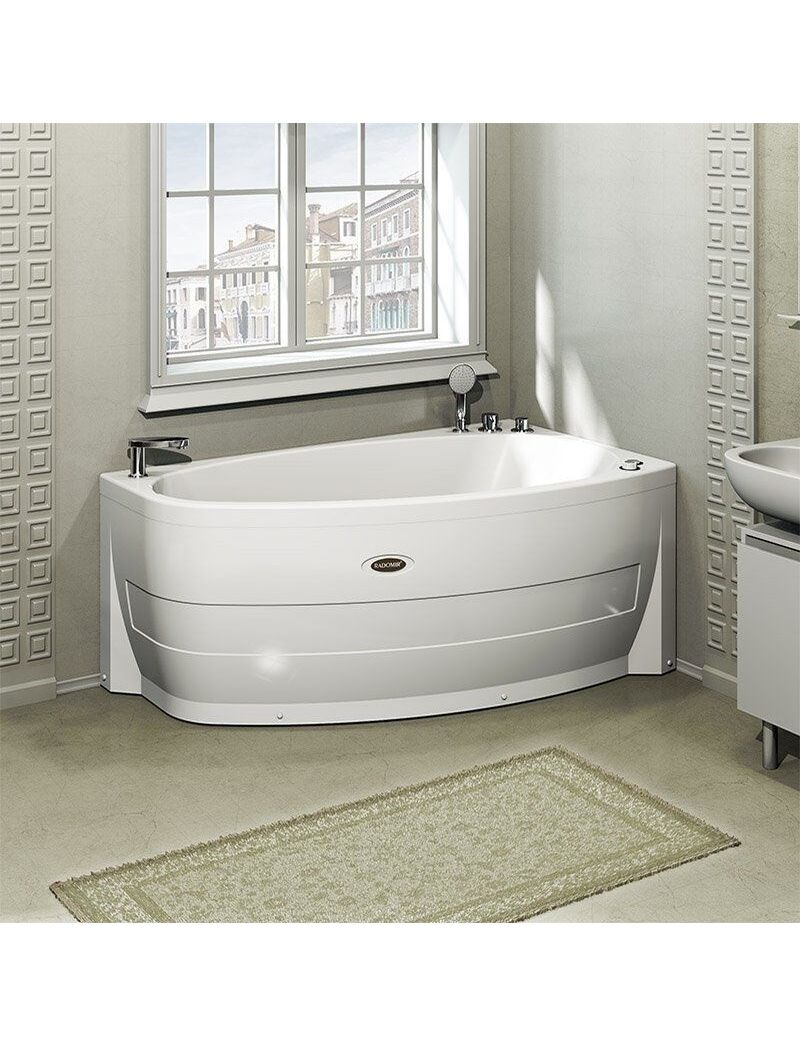 Ванна акриловая "ОРСИНИ", 1600х900 (правое исполнение), рама-подставка, фронтальная панель, слив-перелив полуавтомат (бронза, с сифоном)