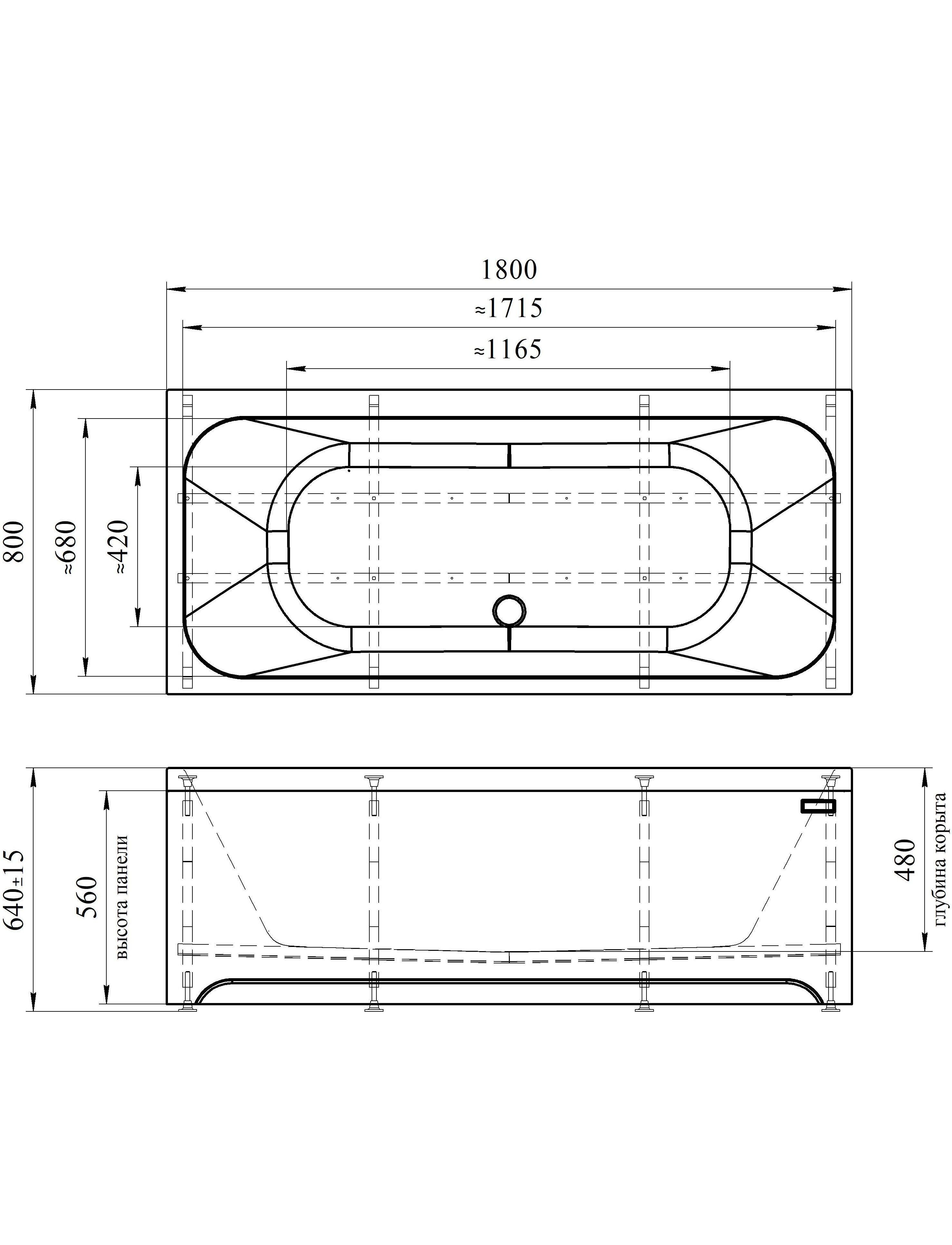 Ванна акриловая "ПРОВАНС 180х80", рама-подставка, фронтальная панель, слив-перелив полуавтомат (хром, с сифоном)