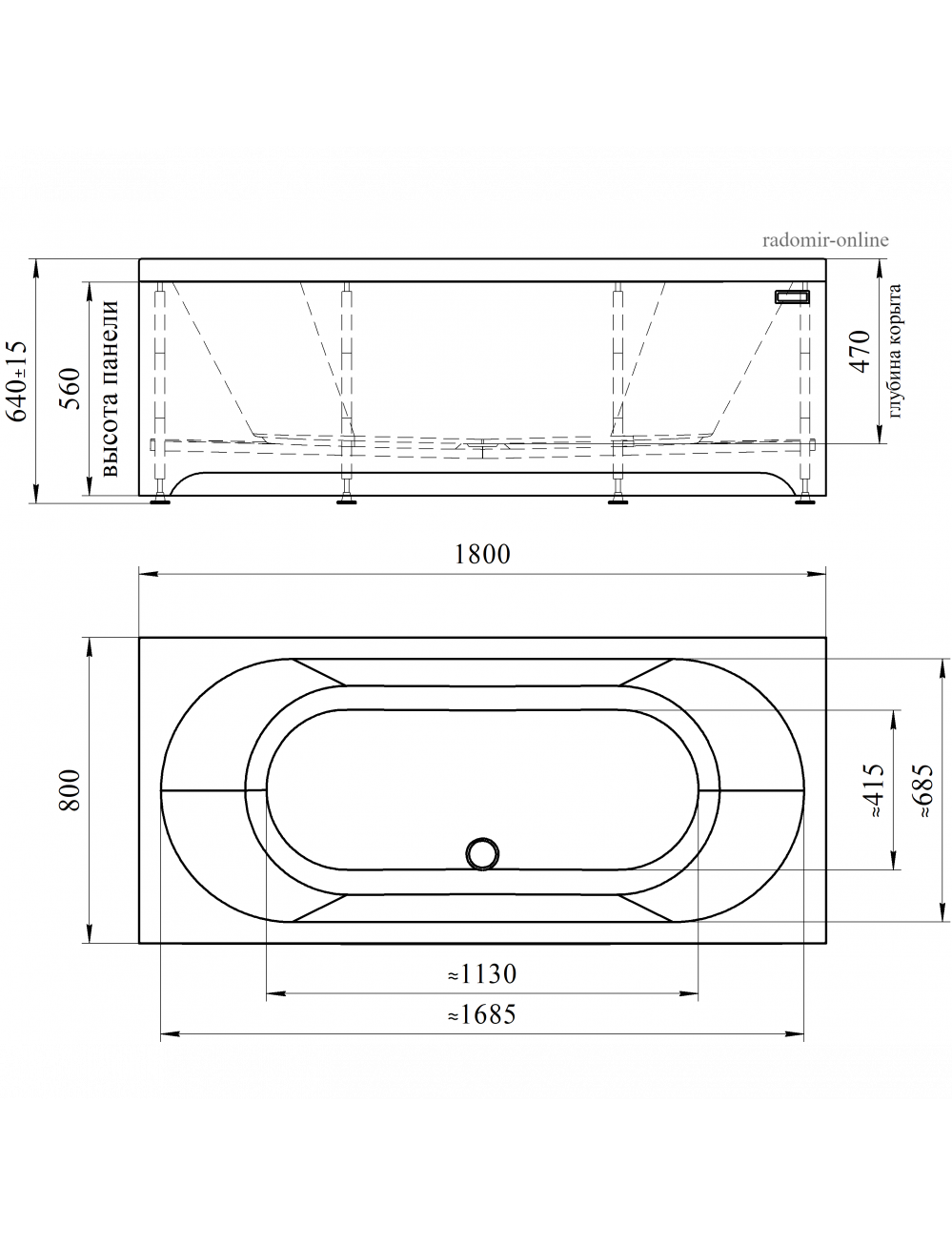 Ванна акриловая "ВАЛЬС 180х80", рама-подставка, фронтальная панель, слив-перелив полуавтомат (хром, с сифоном)
