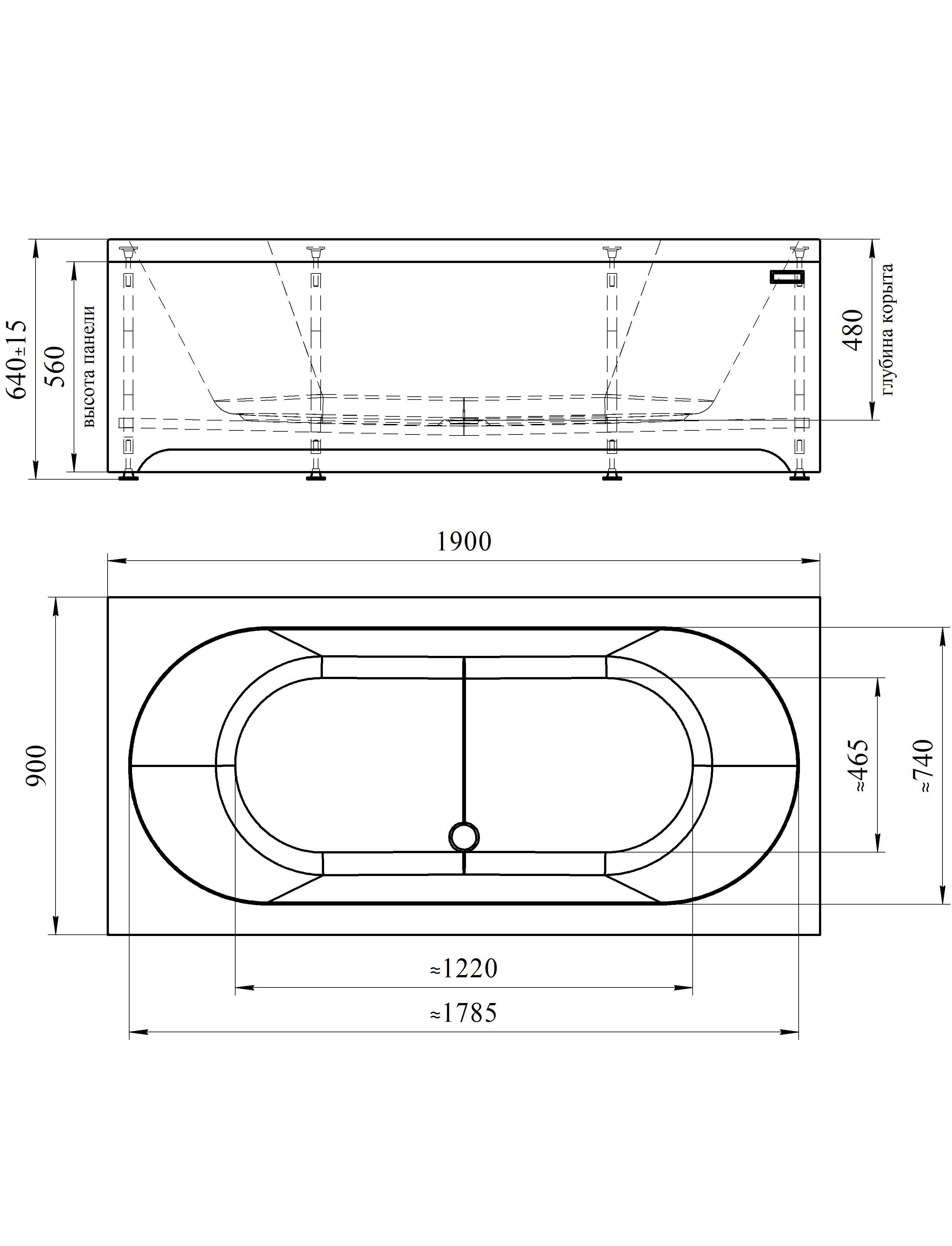 Ванна акриловая "ВАЛЬС 190х90", рама-подставка, фронтальная панель, слив-перелив полуавтомат (хром, с сифоном)