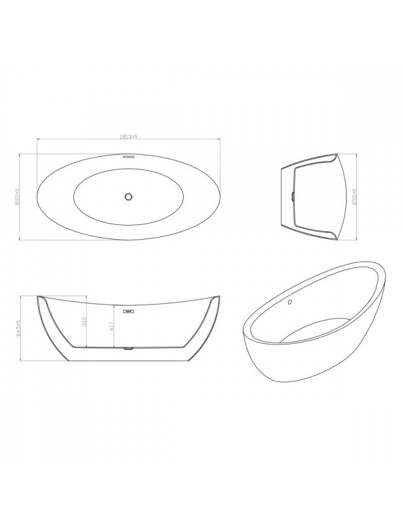 Ванна акриловая Vincea VBT-203, 1800*850*650, цвет белый, щелевой перелив, слив хром, , шт
