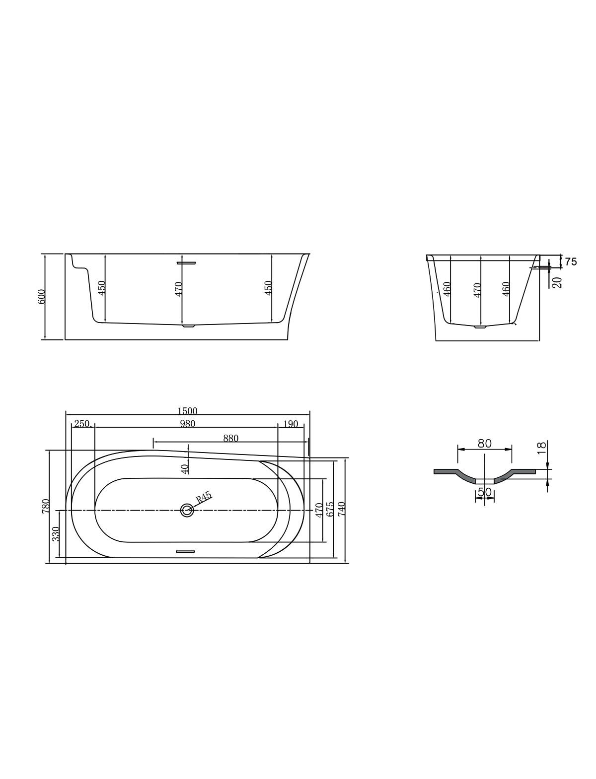 Ванна акриловая Vincea VBT-301-1500L, 1500*780*600, цвет белый, левая, слив-перелив в комплекте, хро, , шт