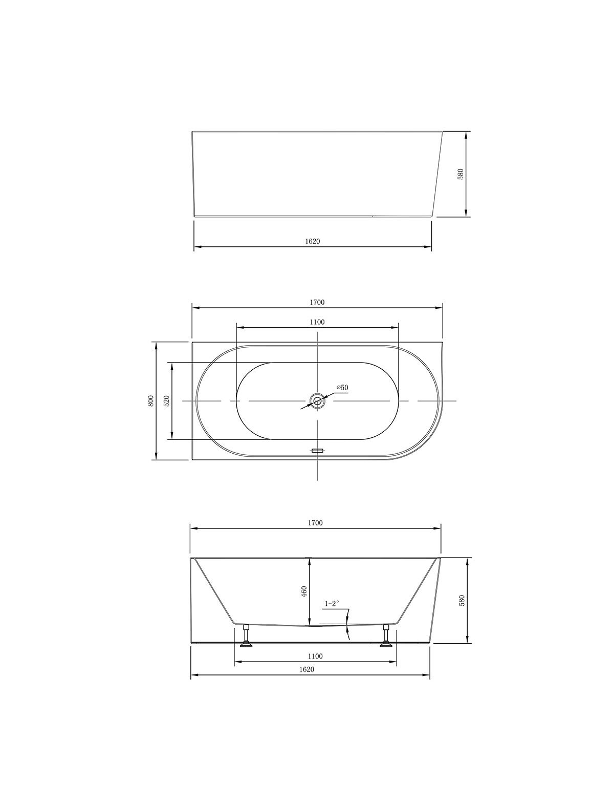 Ванна акриловая Vincea VBT-402-1700L, 1700*800*580, цвет белый, левая, слив-перелив в комплекте, хро, , шт