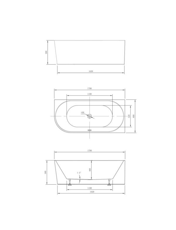 Ванна акриловая Vincea VBT-402-1700R, 1700*800*580, цвет белый, правая, слив-перелив в компл., хро, , шт