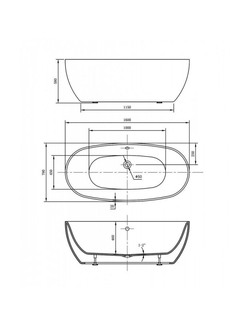 Ванна акриловая Vincea VBT-405-1600, 1600*780*580, цвет белый, щелевой перелив, слив хром, , шт