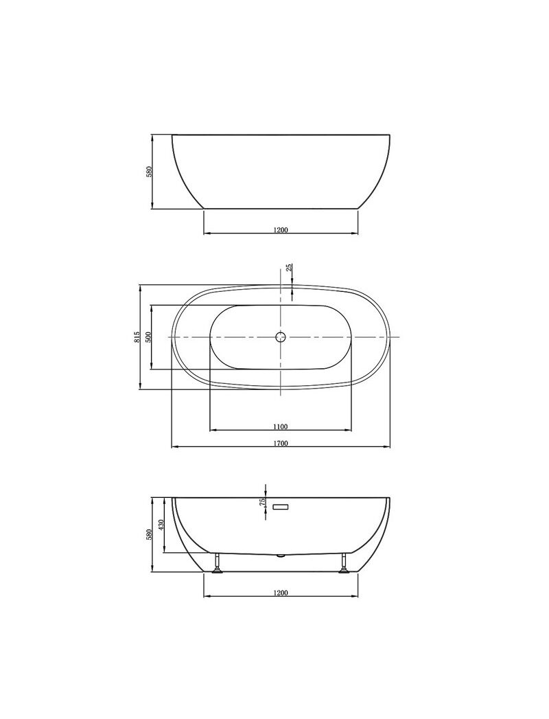 Ванна акриловая Vincea VBT-408-1700 1700*815*580, цвет белый, щелевой перелив, слив хром, , шт