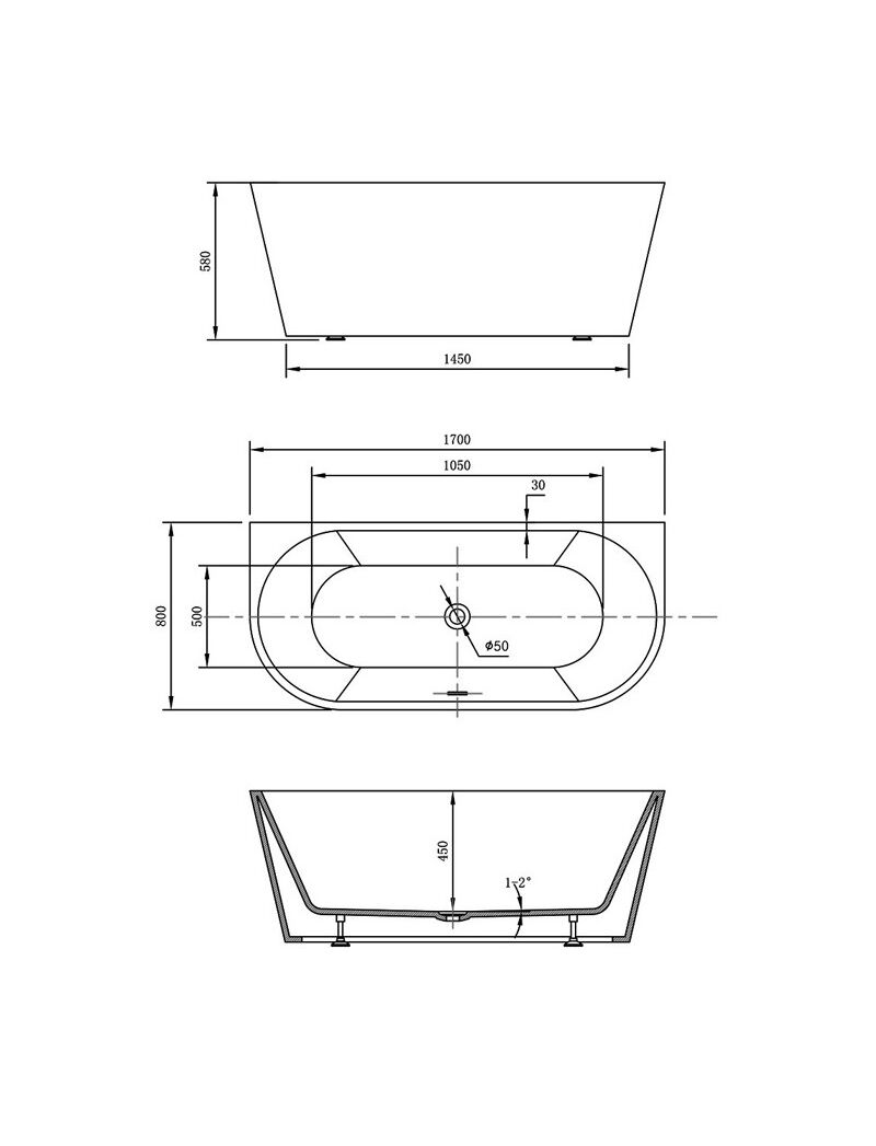 Ванна акриловая Vincea VBT-421-1700MB, 1700*800*580, цвет черн. мат., щелевой перелив, слив белый, , шт