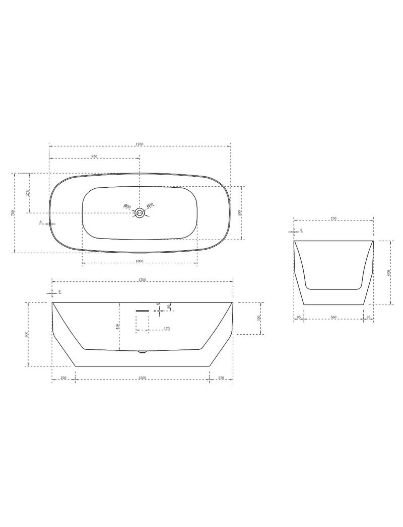 Ванна акриловая Vincea VBT-630, 1700*750*600, цвет белый, слив-перелив в комплекте, белый, , шт