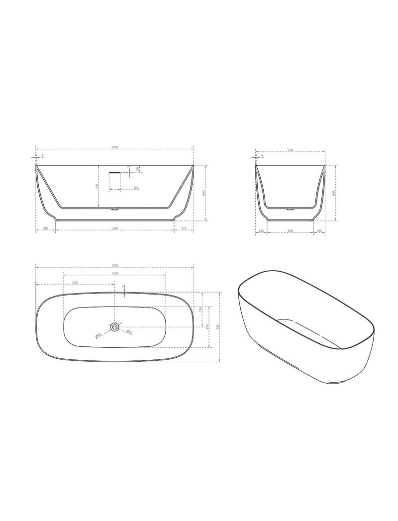 Ванна акриловая Vincea VBT-631, 1700*750*600, цвет белый, слив-перелив в комплекте, белый, , шт
