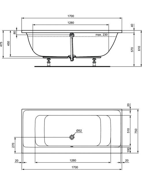 Встраиваемая акриловая прямоугольная ванна 170х75 см Ideal Standard CONNECT AIR E106601