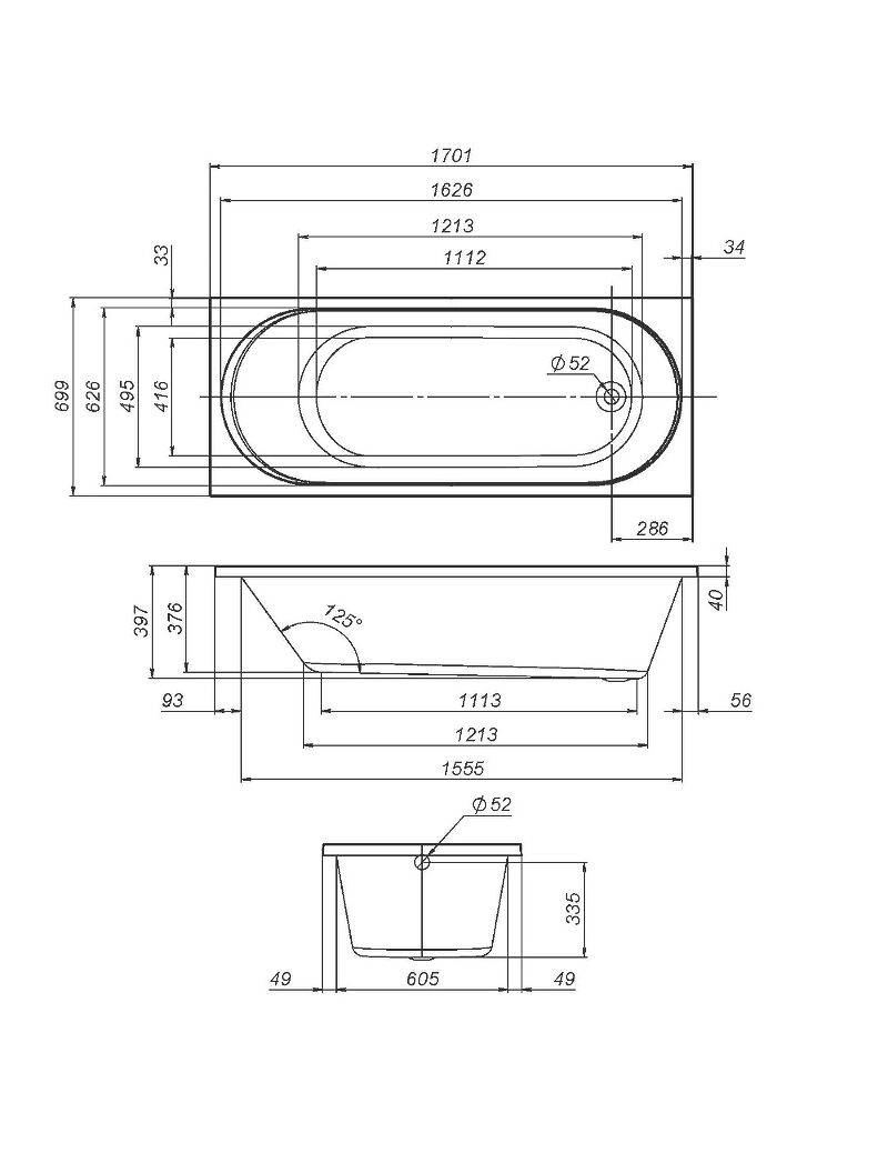 W94A-170-070W-A1 X-Joy Ванна акриловая 170х70