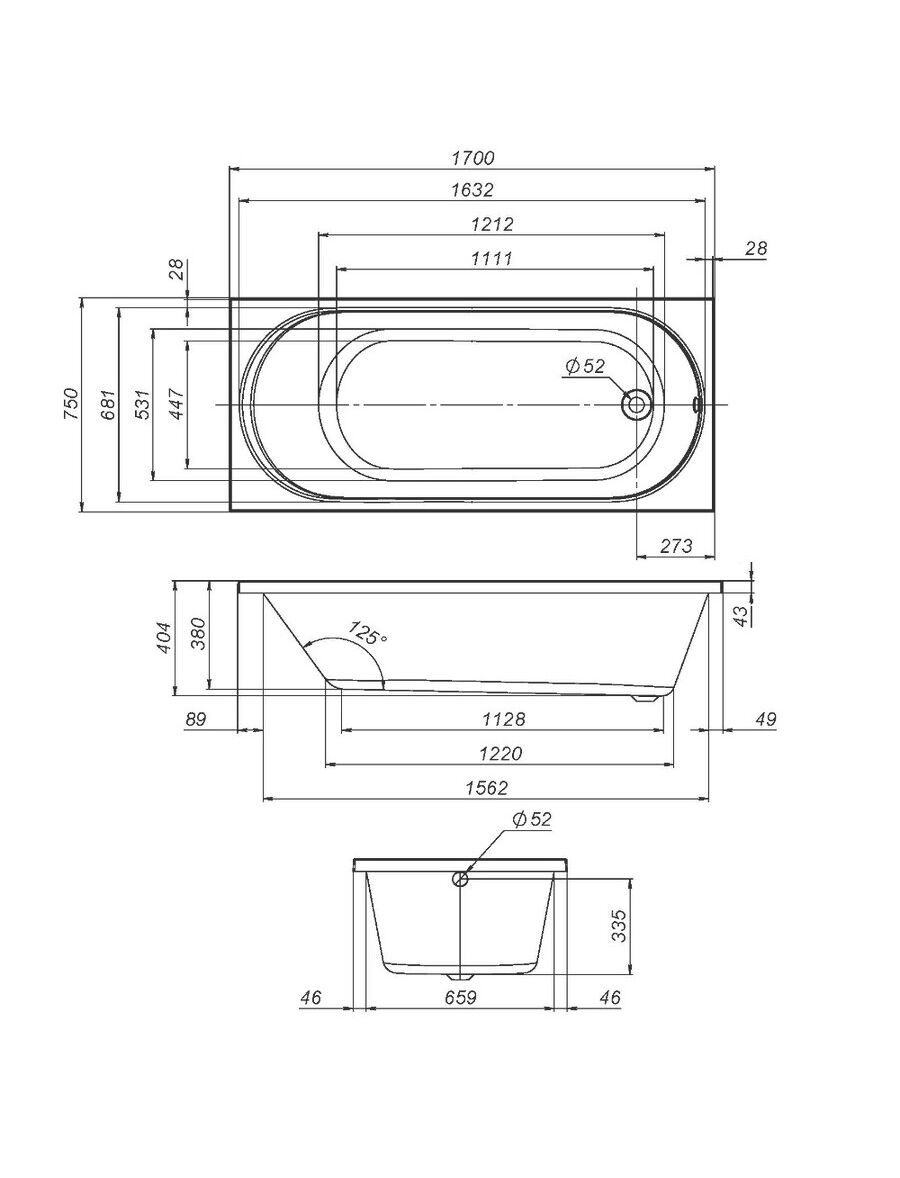 W94A-170-075W-A X-Joy Ванна акриловая 170х75