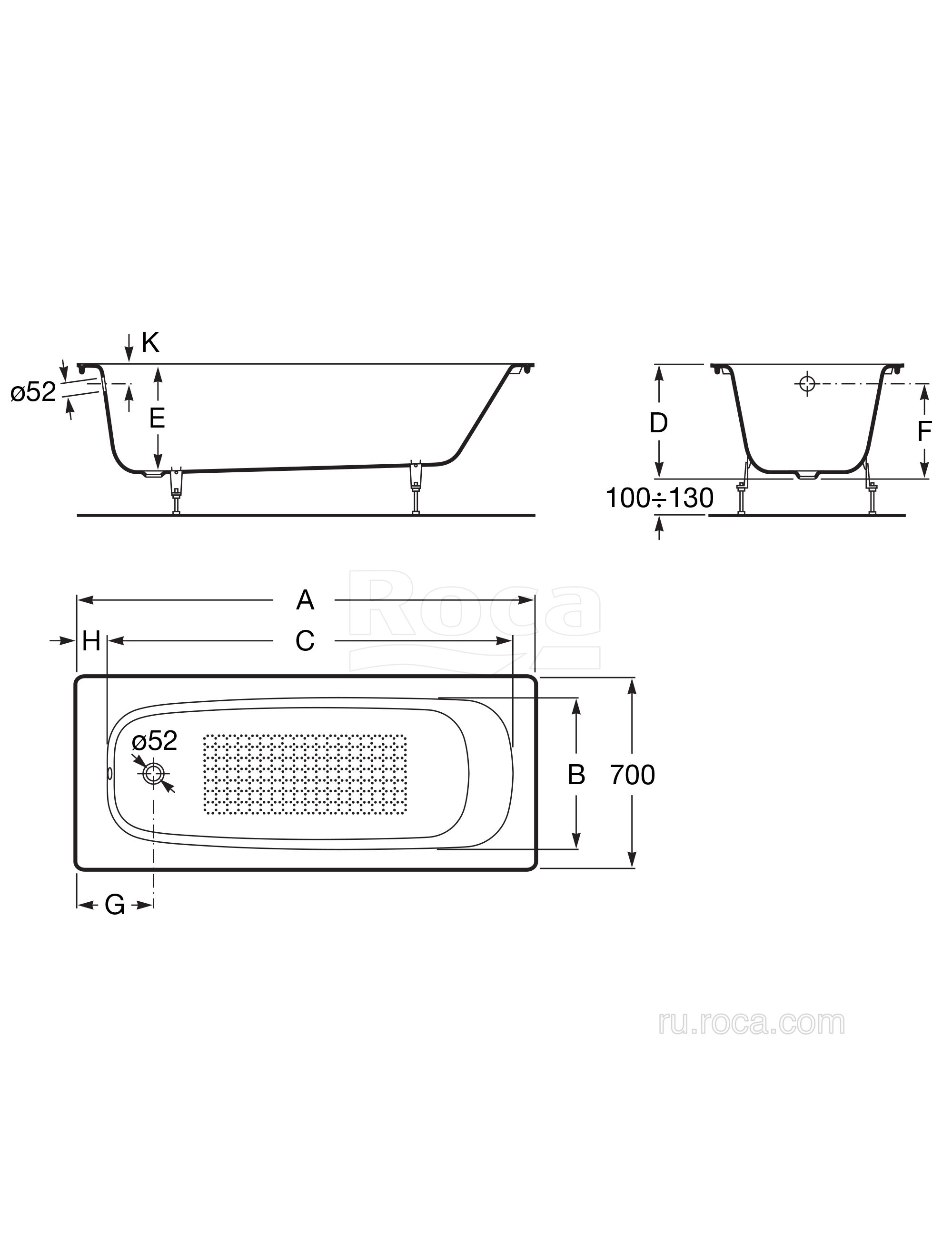 Ванна Roca Continental 140х70 anti-slip 212914001