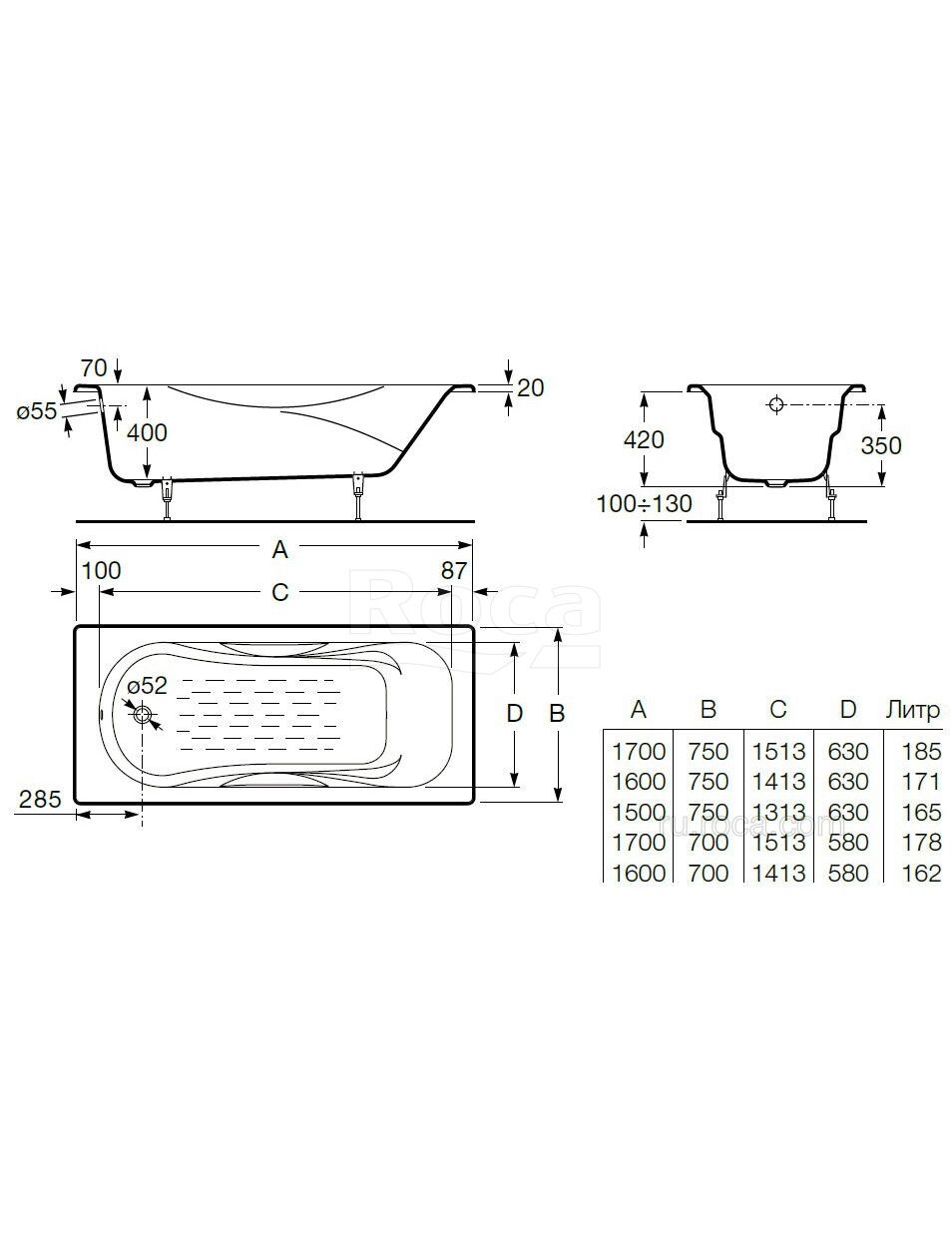 Ванна Roca Malibu 170х75 без отверстий для ручек, anti-slip 230960000