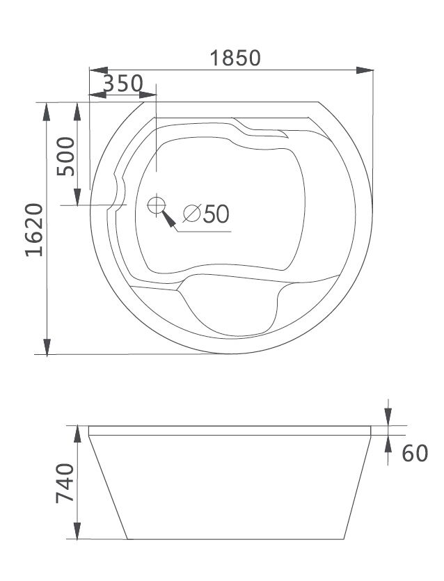 Акриловая ванна Gemy G9053B 185х162 с гидромассажем