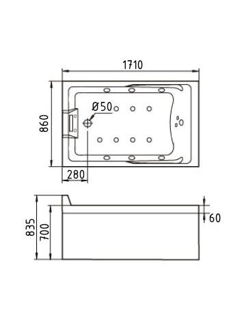 Акриловая ванна Gemy G9066-II O 171х86 L с гидромассажем