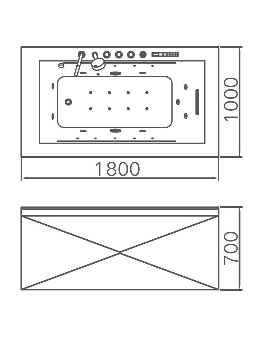 Ванна акриловая Gemy G9258 1800х1000х700 с г/м, а/м, хромотерапия, электронный пульт
