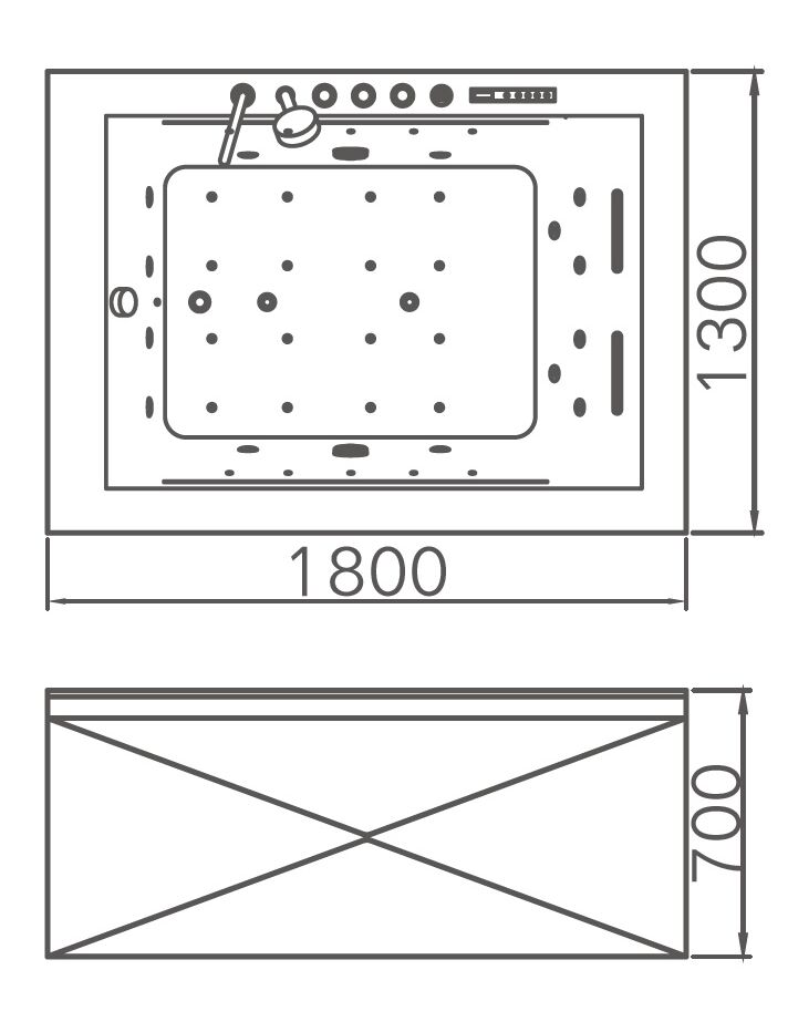- Каскадный массаж, смеситель с изливом, душевая лейка