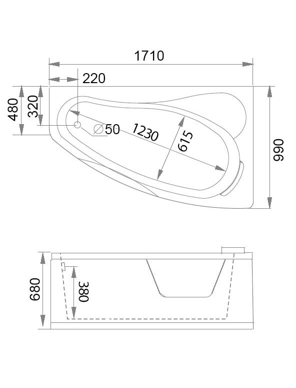 Ванна акрил Gemy G9046-II K 1700х1000х720
