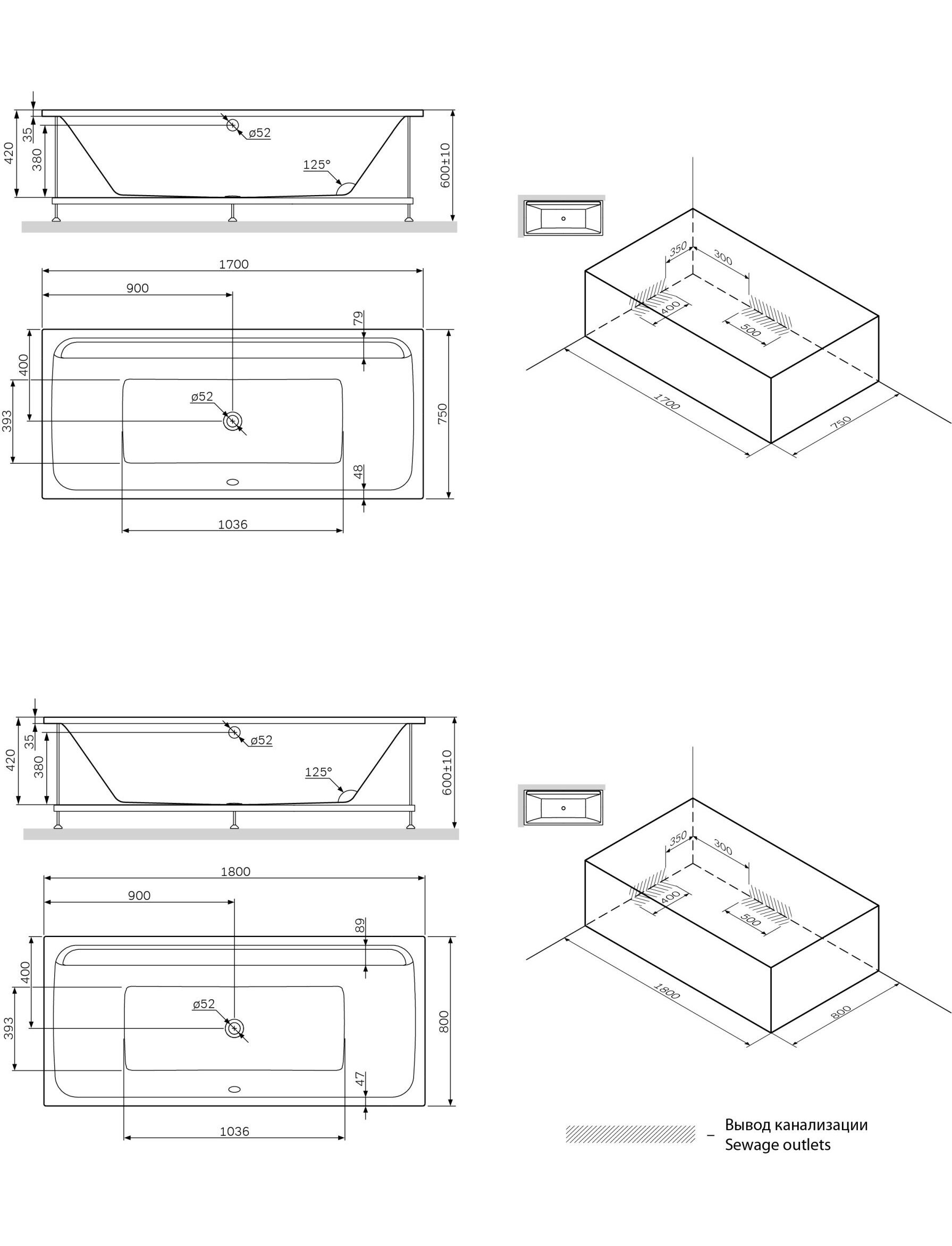 W52A-170-075W-R Inspire V2.0 каркас для ванны, 170х75 , комплект