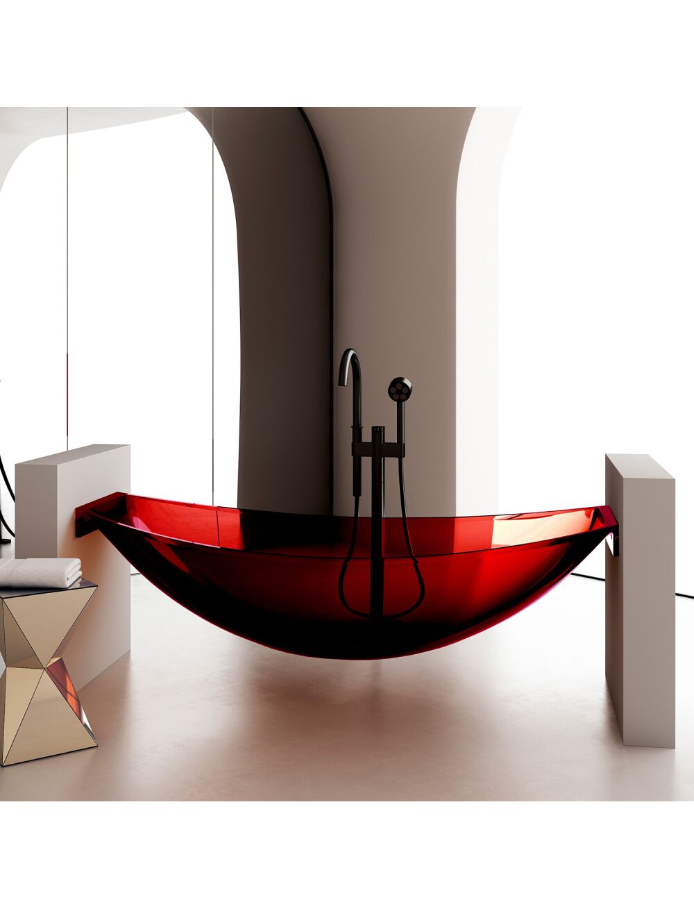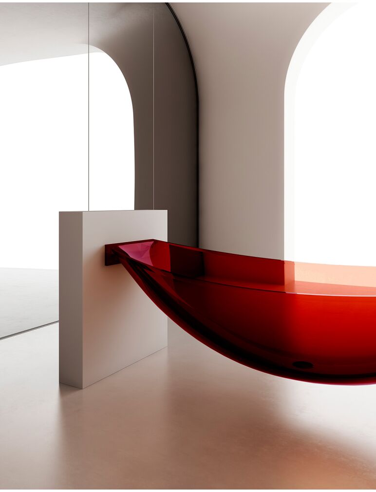 Прозрачная ванна ABBER Kristall AT9704Rubin подвесная красная