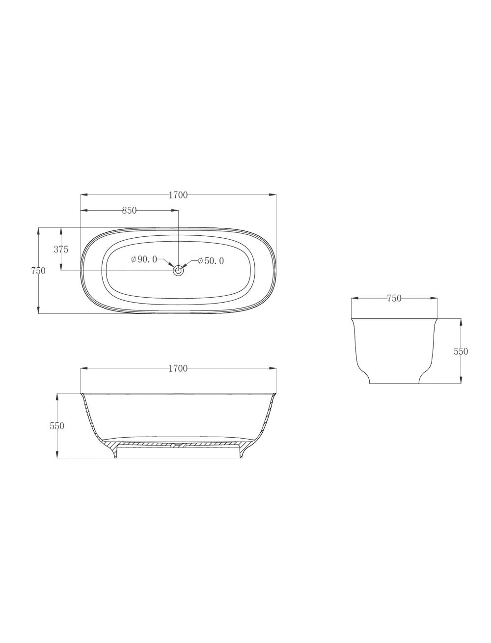 Прозрачная ванна ABBER Kristall AT9707Onyx черная