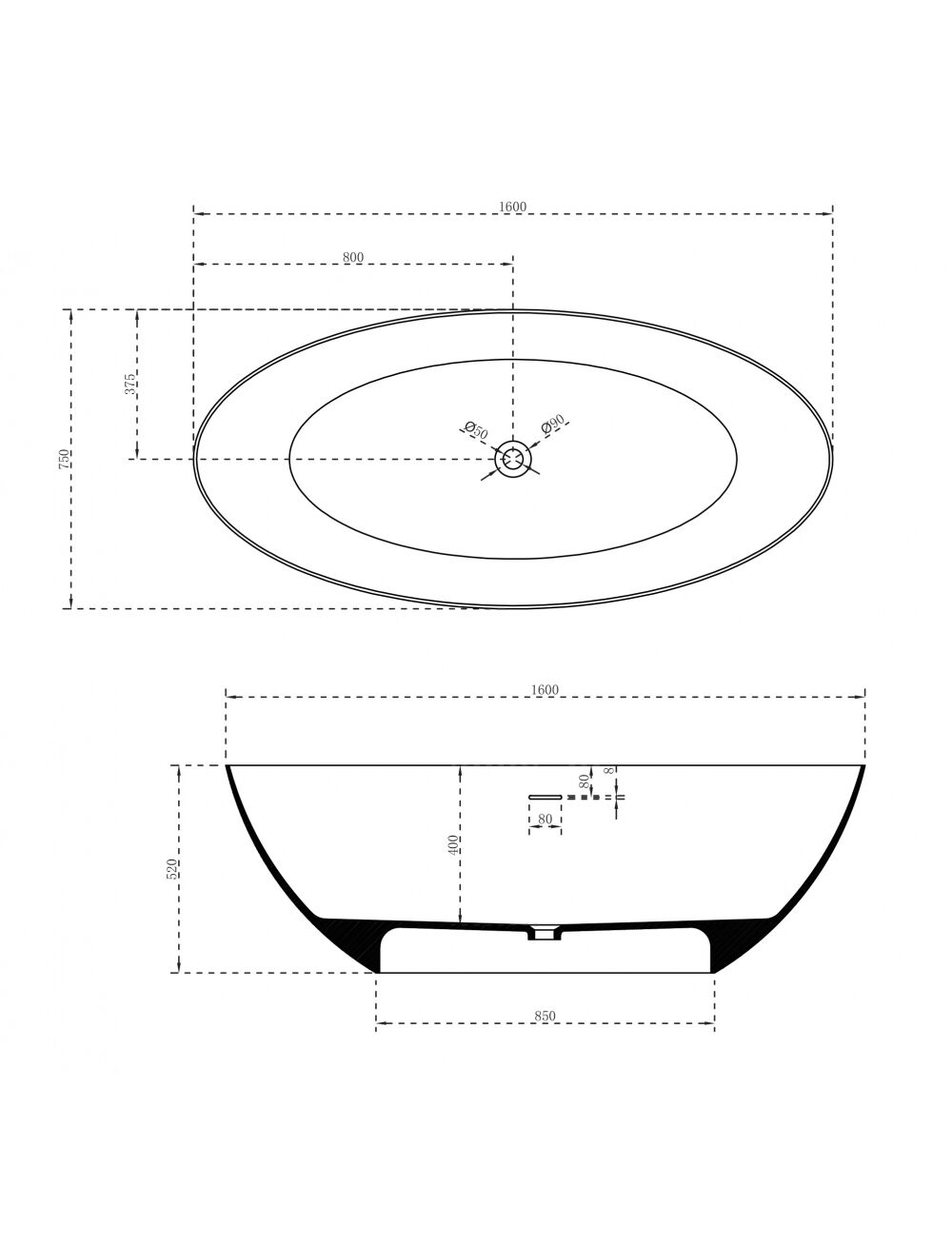 Ванна из искусственного камня ABBER Stein AS9625-1.6 белая матовая