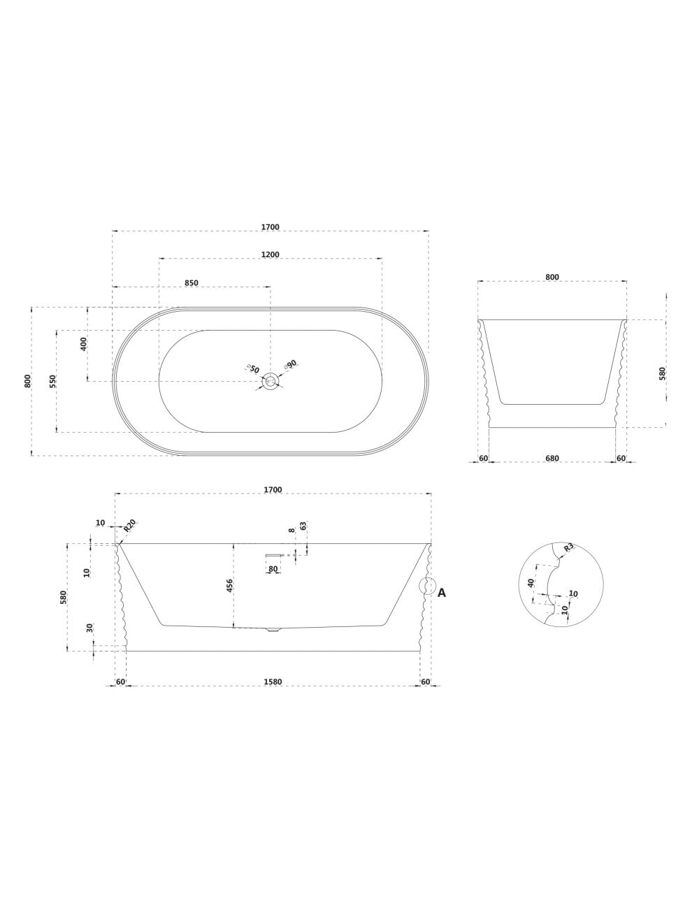 Ванна из искусственного камня ABBER Stein AS9650 белая матовая