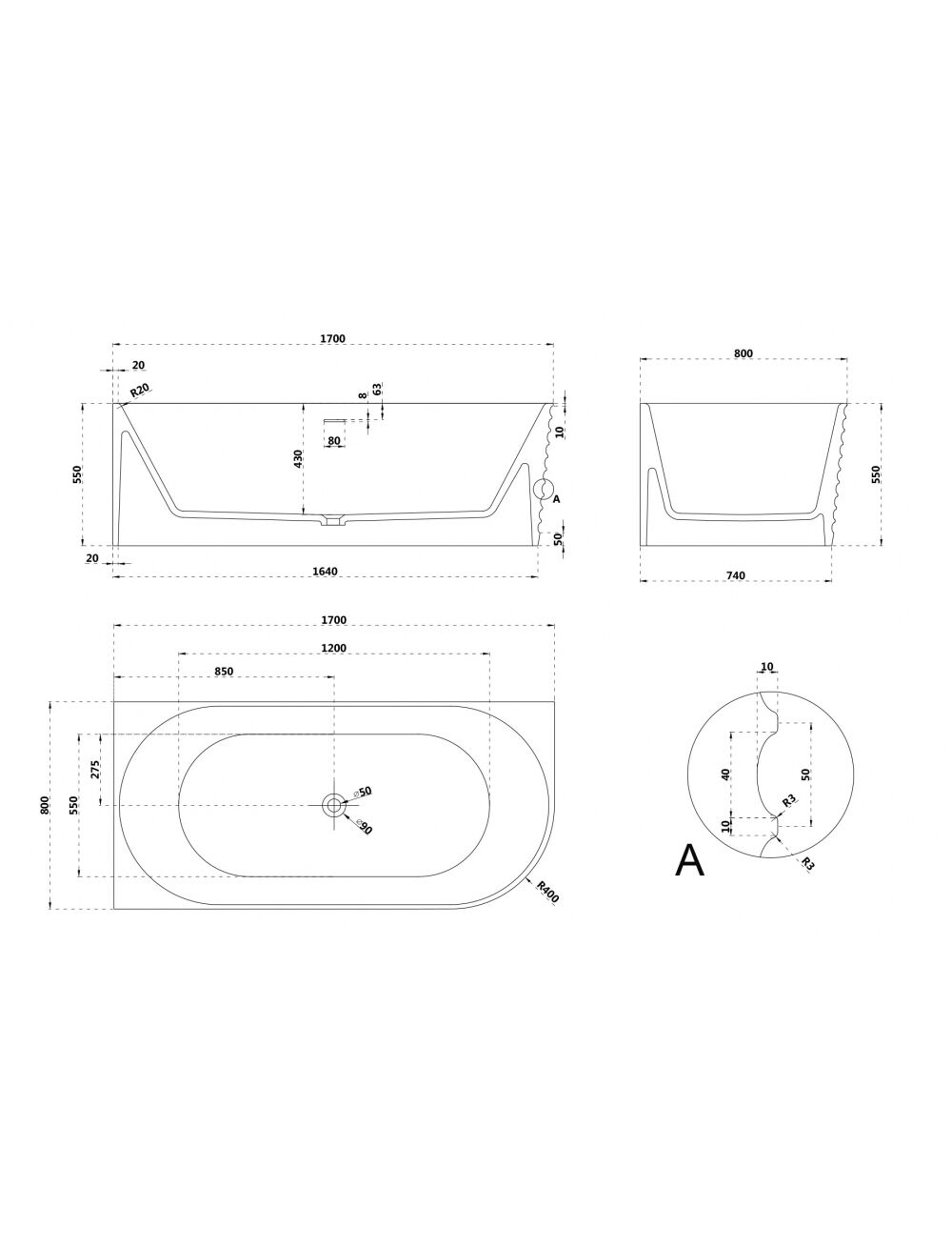 Ванна из искусственного камня ABBER Stein AS9651 L белая матовая