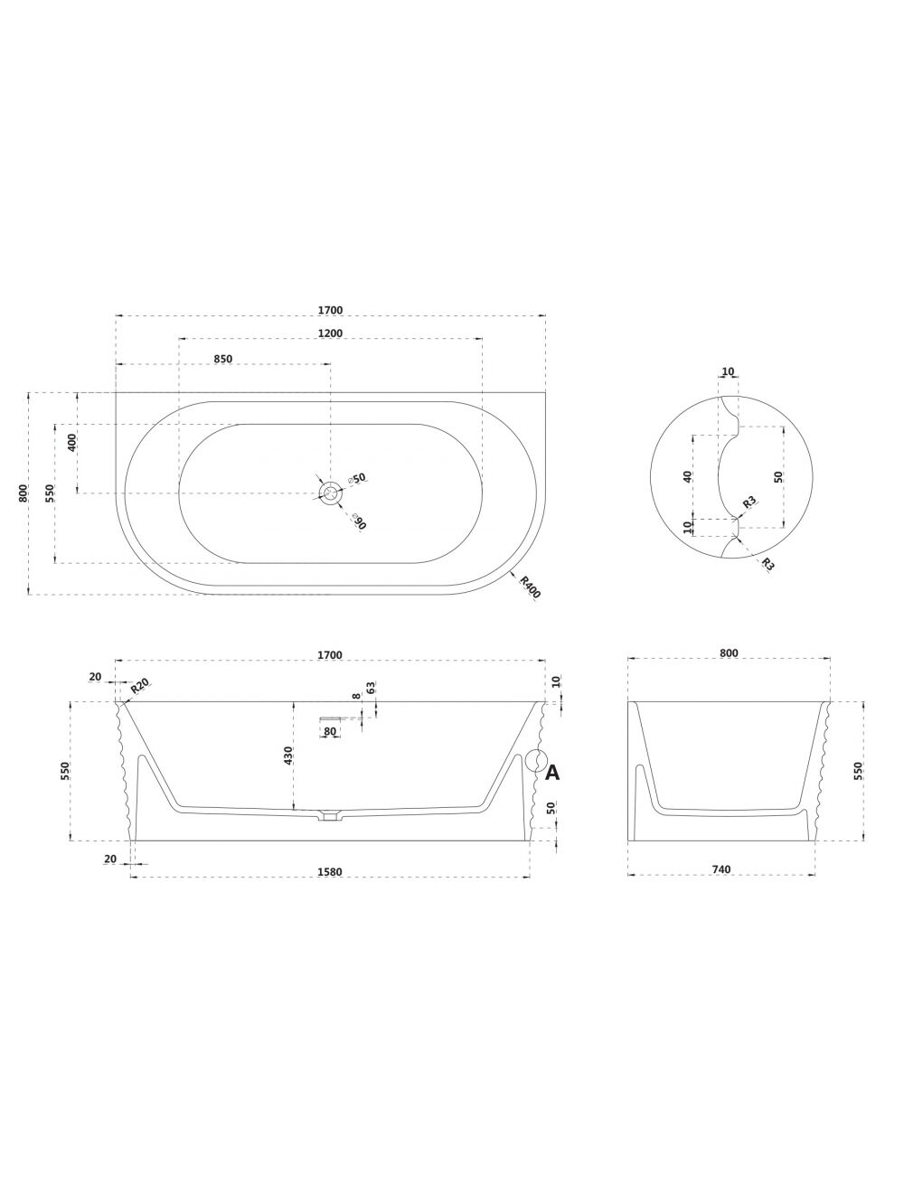 Ванна из искусственного камня ABBER Stein AS9652 белая матовая