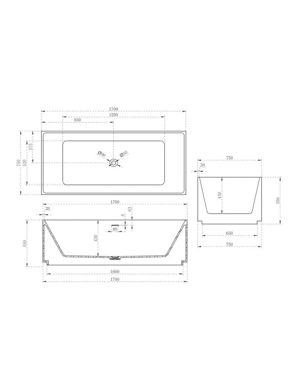 ванна из искусственного камня цвет белый слив-перелив в комплекте