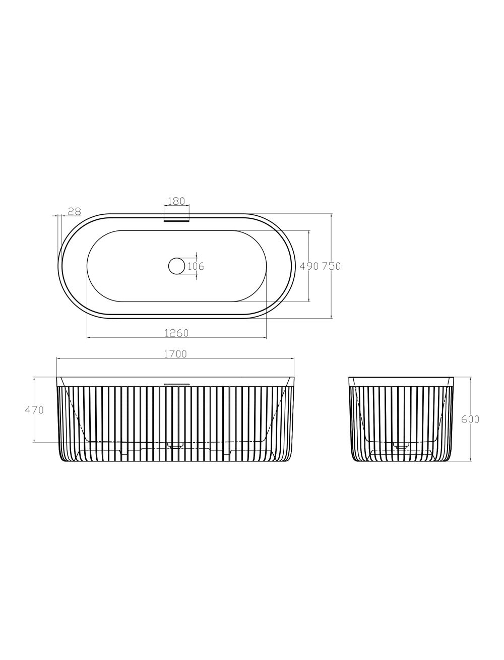 ванна из искусственного камня цвет черный матовый слив-перелив в комплекте