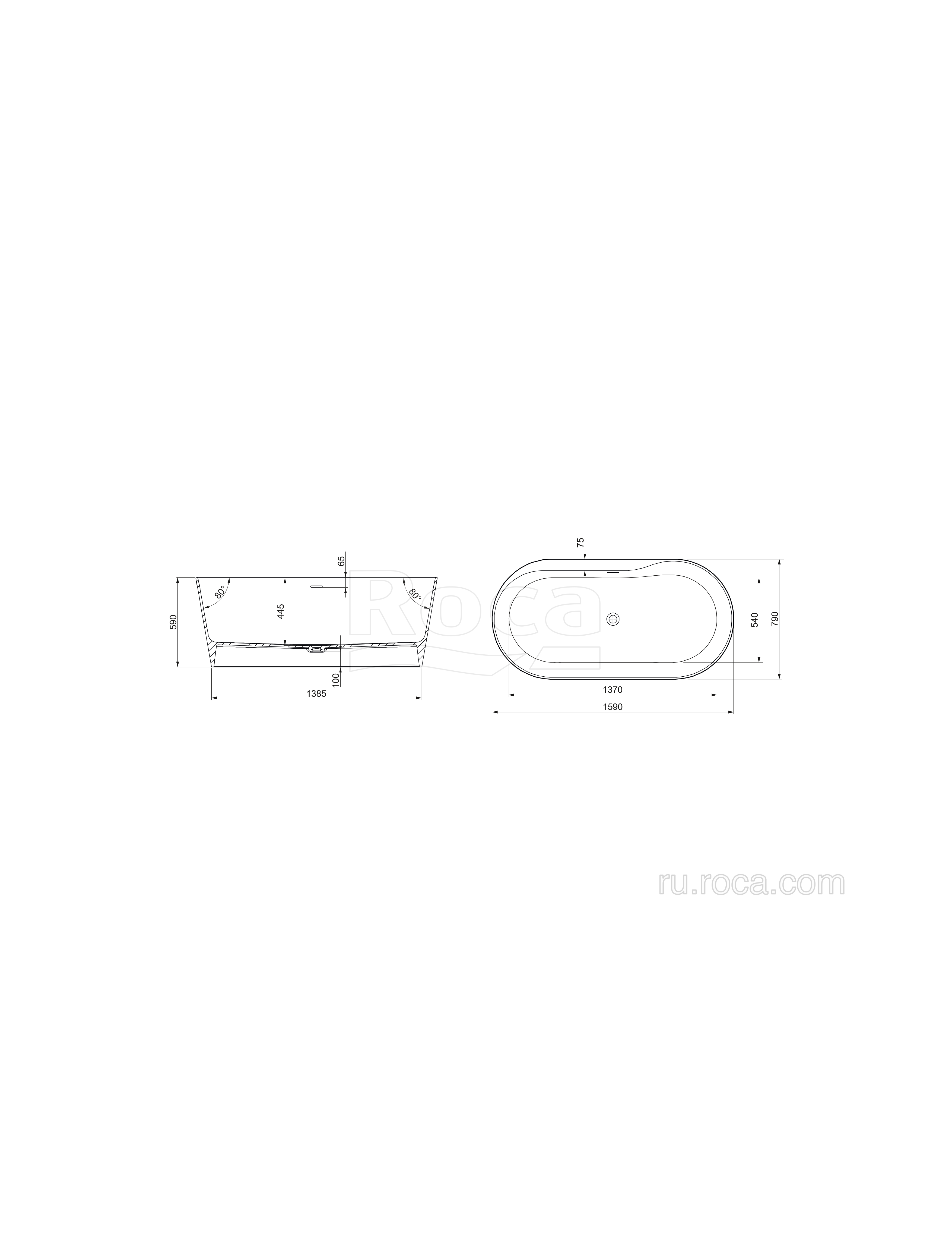 Ванна из материала Stonex® Roca Raina 159х79 овальная белая 248466000