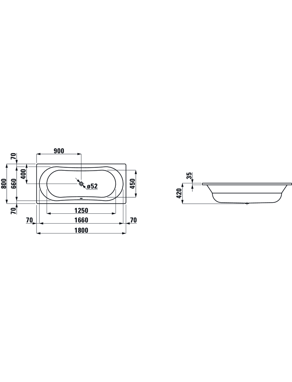 Стальная ванна Laufen Thallium 180х80 2.2509.0.000.040.1 без антискользящего покрытия