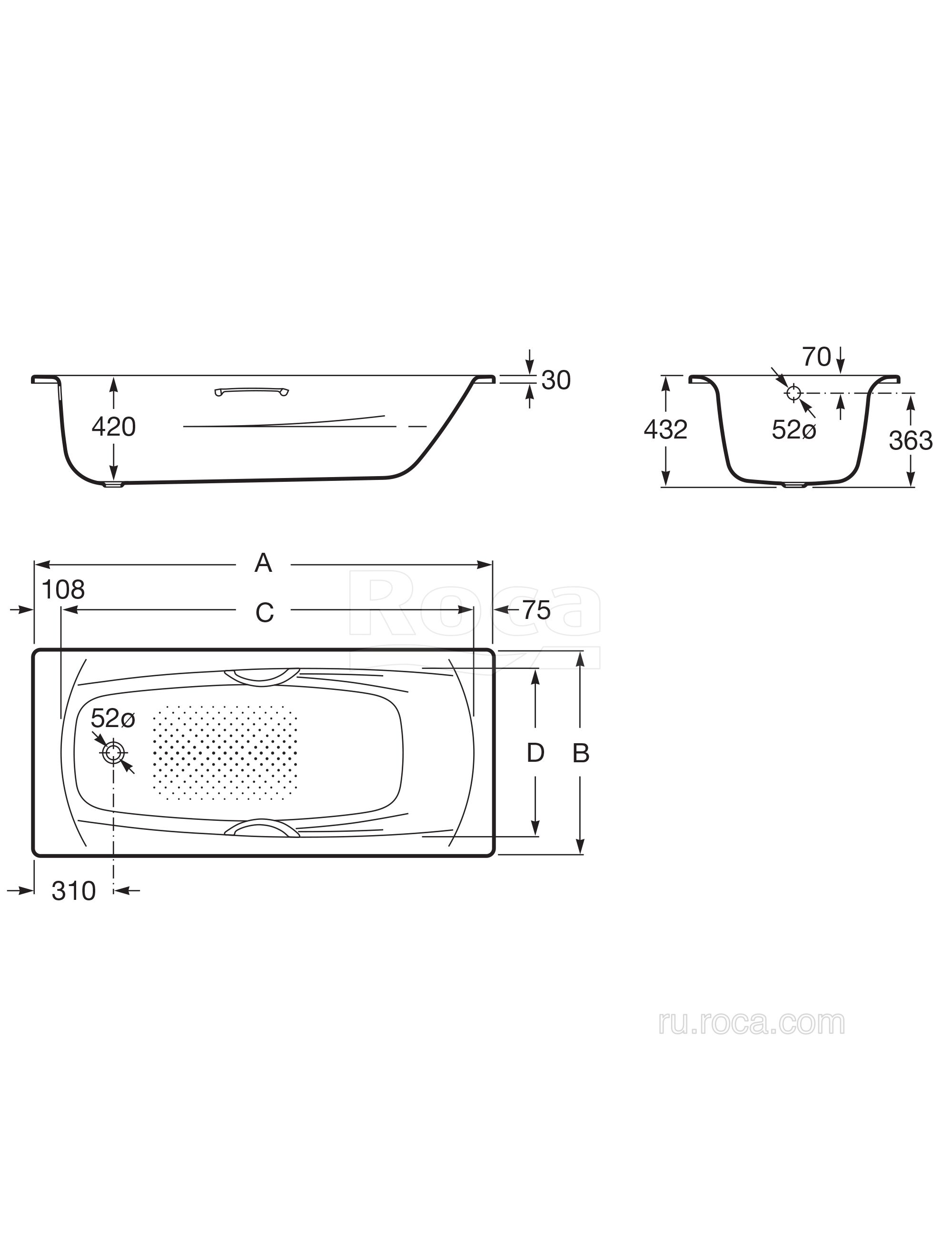 Ванна Roca Swing Plus 170x75 3,5мм, anti-slip, с ручками 236755000