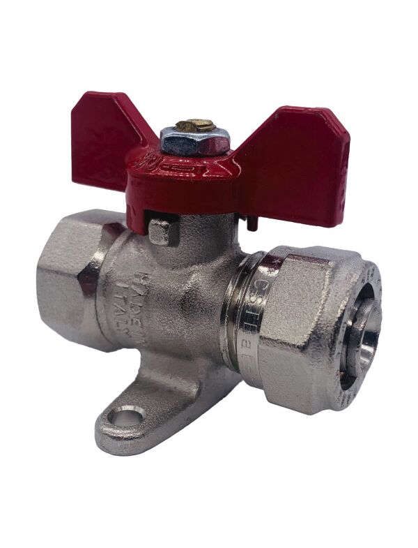 Кран 16*1/2" В шаровый с накидной гайкой и крепежной планкой (бабочка)