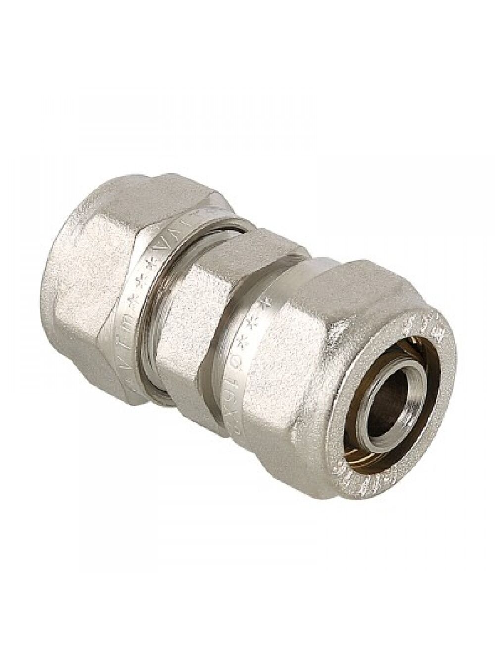 - Прямой латунный никелированный фитинг для соединения металлополимерных труб. Имеются равнопроходные модели и модели с переходом на другой диаметр.