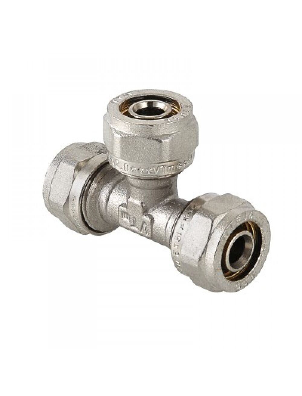 - Фитинг обжимной – тройник латунный никелированный для соединения металлопластиковых (металлополимерных) труб. Имеются равнопроходные и переходные модели.