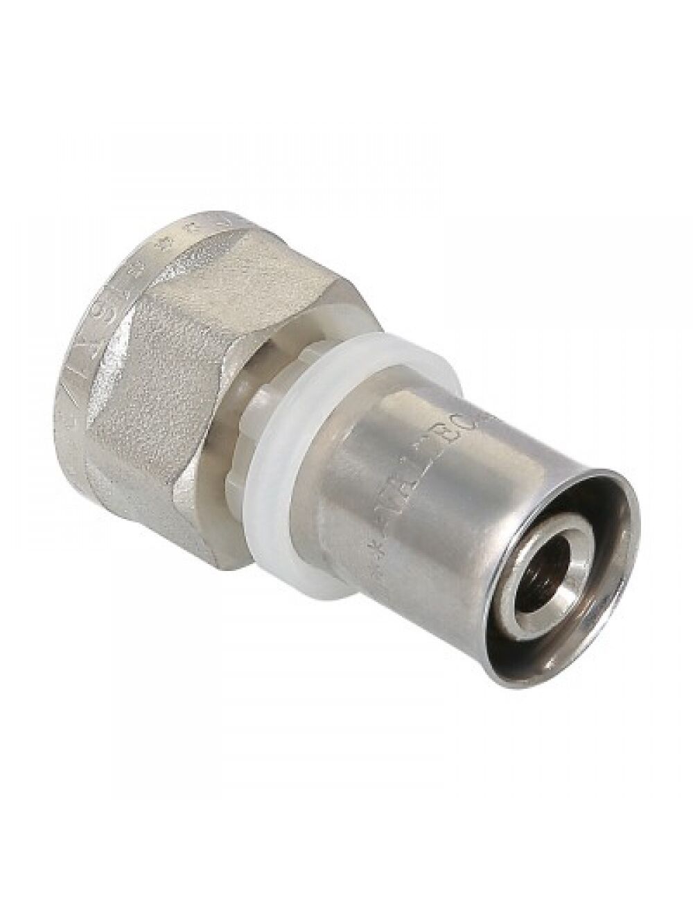 - Пресс-фитинг с переходом на внутреннюю резьбу применяется в качестве соединителя металлопластиковой (металлополимерной) либо PEX-трубы и элемента системы с резьбовым патрубком – крана, клапана и т.д. Областью применения фитинга являются системы водоснабжения, отопления, трубопроводы технологического назначения, транспортирующие среды, которые неагрессивны к латуни, материалу уплотнений (EPDM), используемой трубы. Корпус изделия никелирован. Пресс-гильза изготовлена из нержавеющей стали AISI 304, фиксатор – из нейлона. Резьба – внутренняя, соответствует ГОСТу 6357. Опрессовка гильзы фитинга производится пресс-инструментом с насадками «ТН».