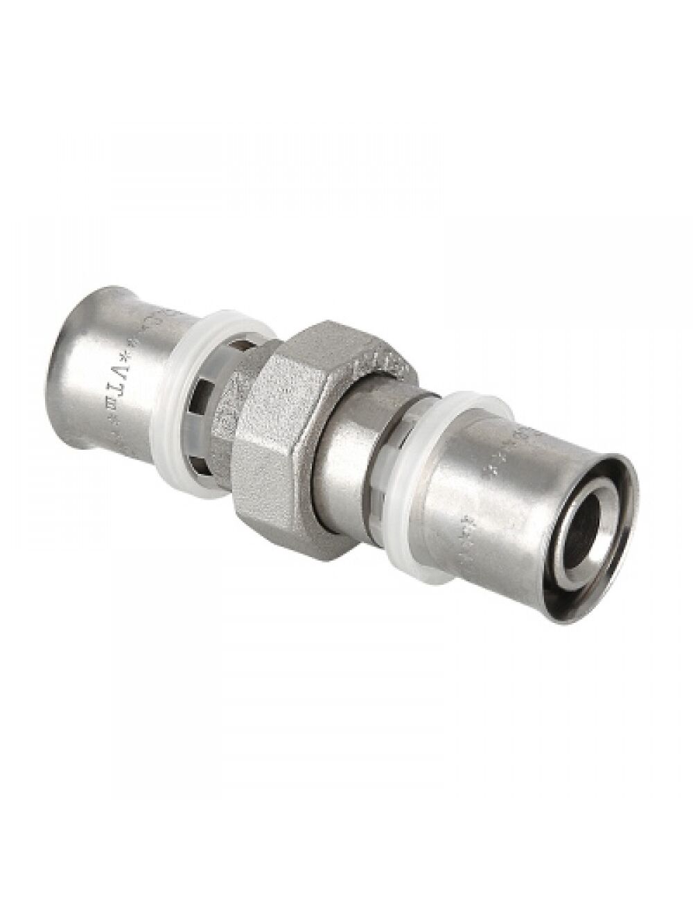 - Прямой равнопроходной пресс-фитинг для создания разъемного соединения на трубопроводе из металлополимерных труб (металлопластиковых труб) или труб из сшитого полиэтилена. Состоит из двух пресс-деталей: с переходом на наружную резьбу и с накидной гайкой.