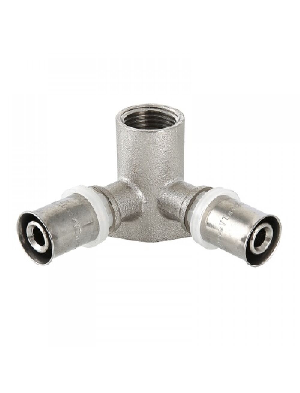 - Угловой пресс-фитинг-тройник с креплением (проходная водорозетка) предназначен для присоединения к металлопластиковым (металлополимерным) трубам и трубам из сшитого полиэтилена элемента системы, имеющего наружную резьбу. Резьба фитинга – внутренняя трубная по ГОСТу 6357.